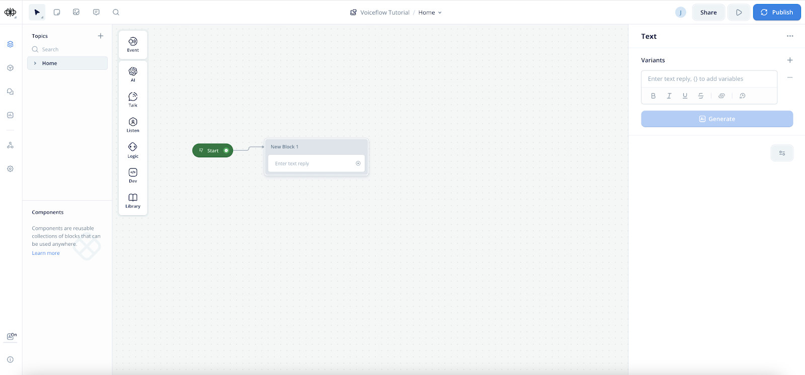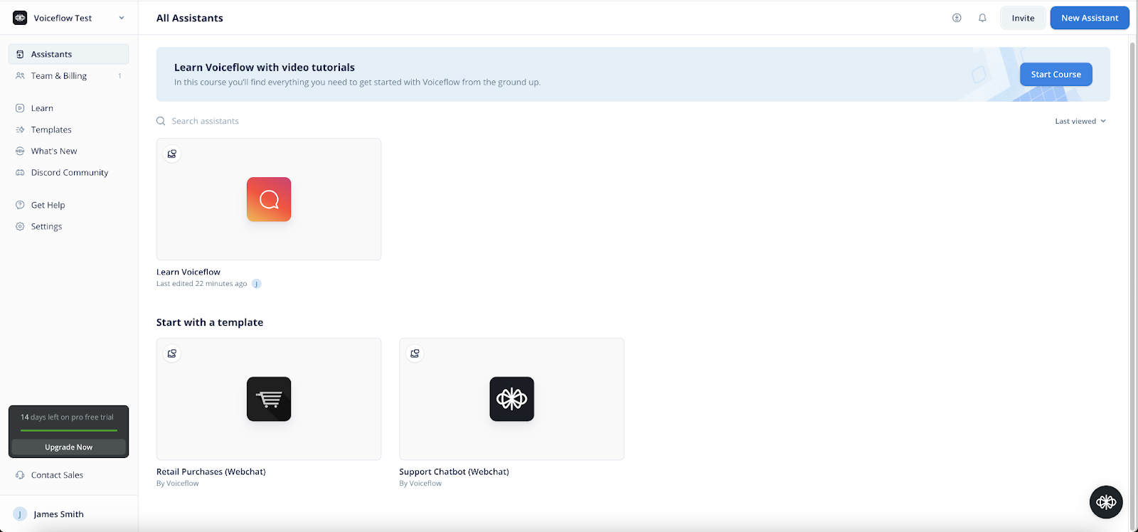 Voiceflow allows you to build a simple chatbot with incredibly high potential. When you register a Voiceflow account for free, you get access to all of Voiceflow’s tools and resources and can use them without any skills necessary.