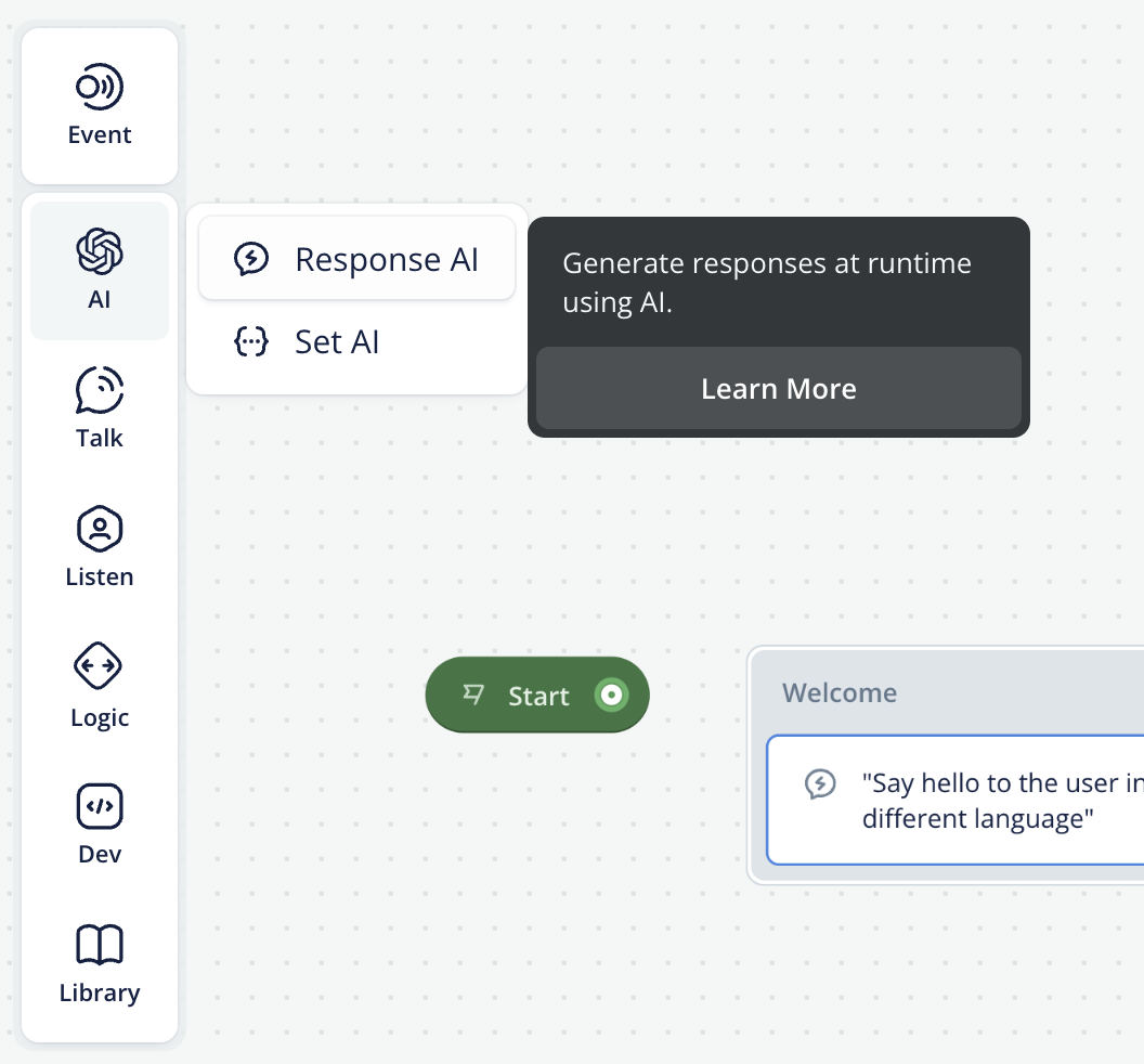 7. Create an AI prompt box by hovering over “AI”, then “Response AI”.