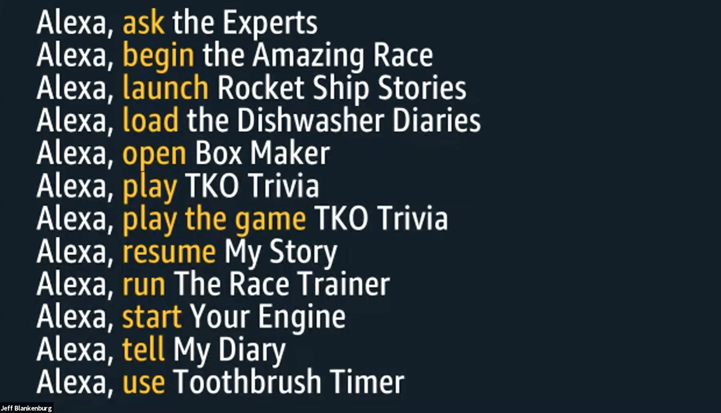Jeff: I can't emphasize this enough. If you're not getting your skill out in front of real people, then you're never going to feel like it's as successful as it could have been. This is because each of us has a [different] idea about how people speak.