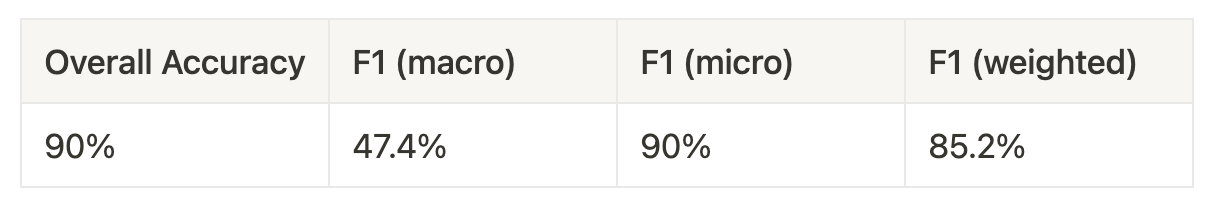 To measure the consequence of data unbalance we can use a measure called a F1 score. A F1 score provides a more holistic representation of how accuracy works. We won’t go into depth in this article but you can read more about it here.