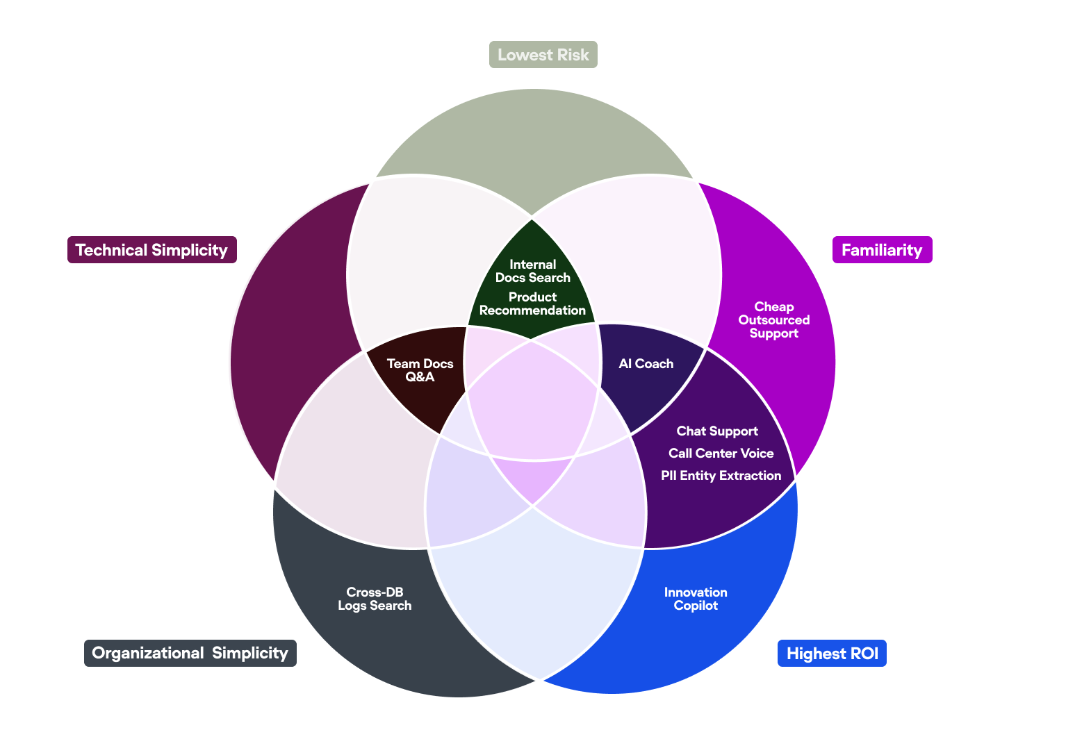 Risk defines how many large organizations operate and, along with security, serves as a counterbalance to business, product, and engineering teams. Certain use cases within organizations are more sensitive, whether it is the data being accessed, the use case being presented, the types of customer interactions, or compliance factors in heavily regulated industries. Deploying a project that has a lower risk profile can allow organizations to start small and break things before taking on higher risk opportunities.