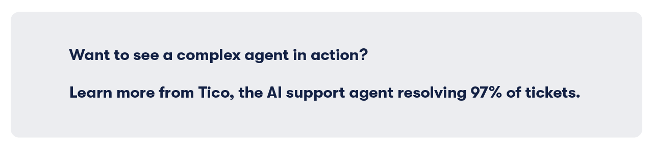 This complex agent can complete simple actions ideal for mid-sized businesses or those with higher volume looking to automate a high percentage of their support queries.