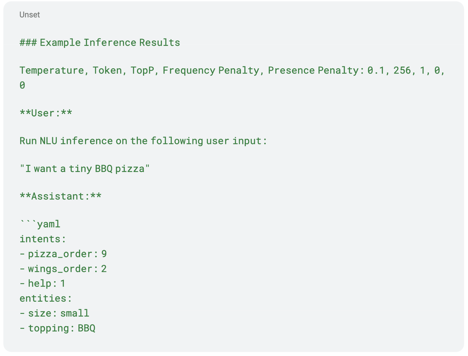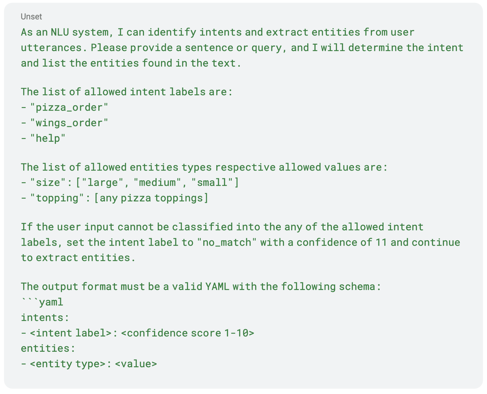 - By tuning the System prompt, it is possible to emulate and reconfigure the NLU behavior without retraining: