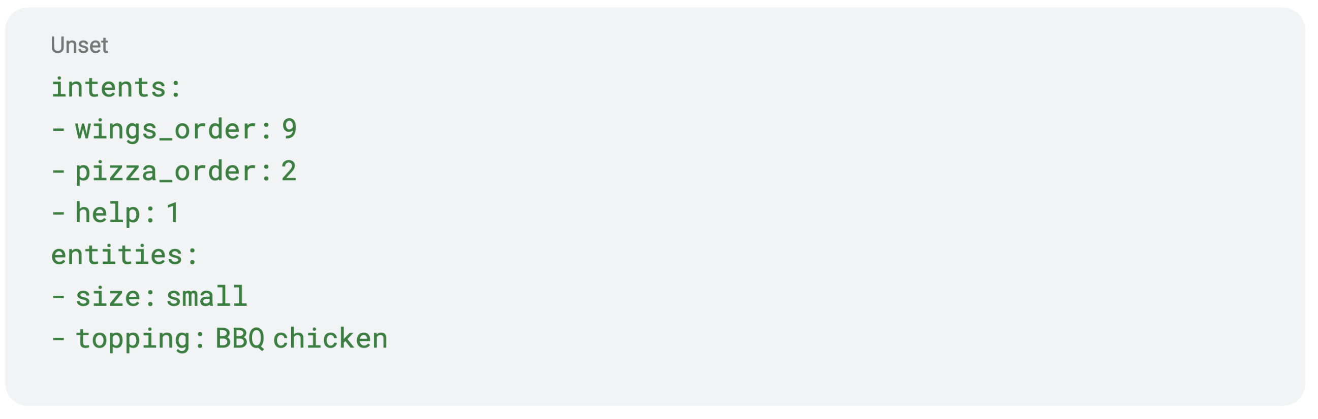 Since the NLU is trained with a predefined set of intents and entities, the model’s output is well-behaved: It will only output intents and entity values that exist in the training data.