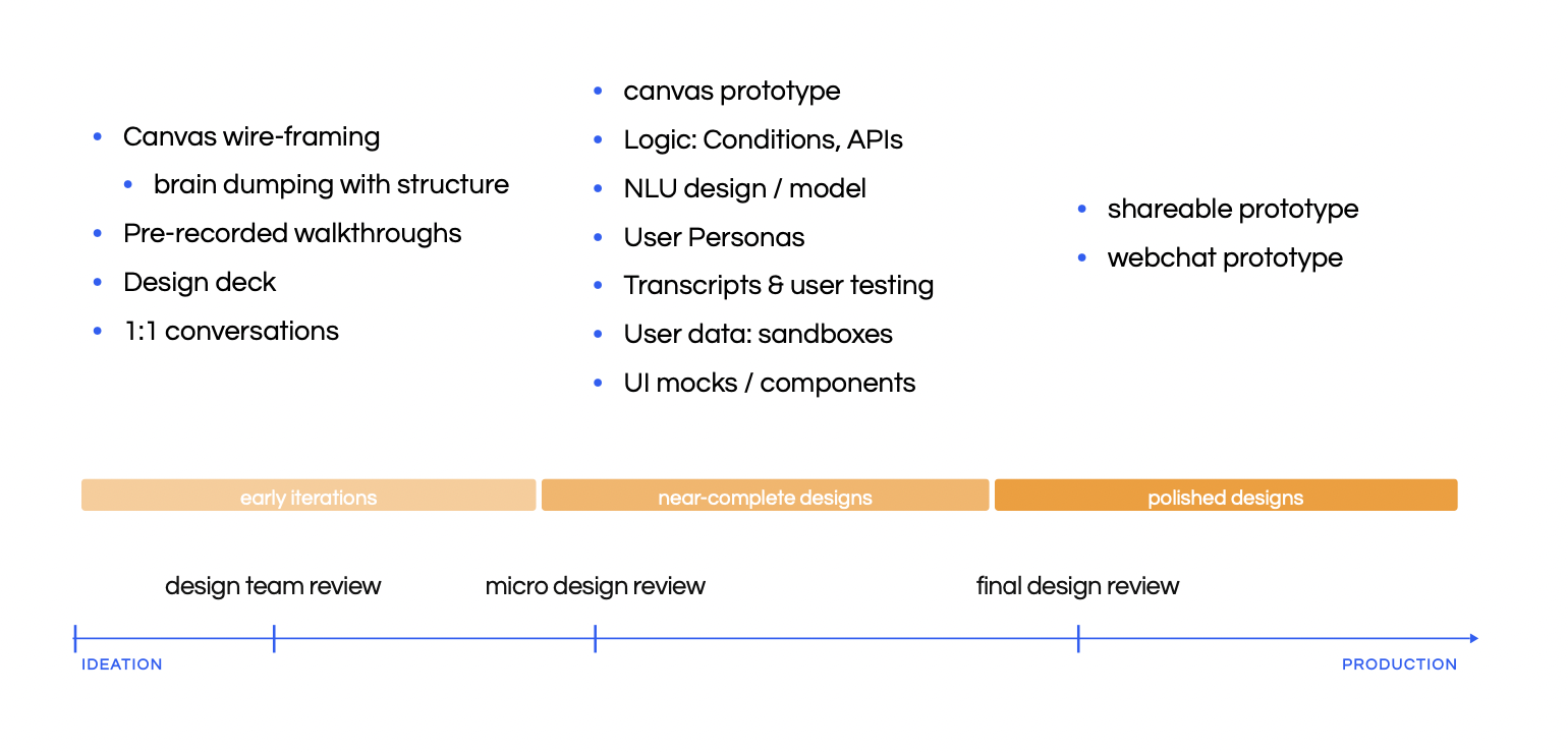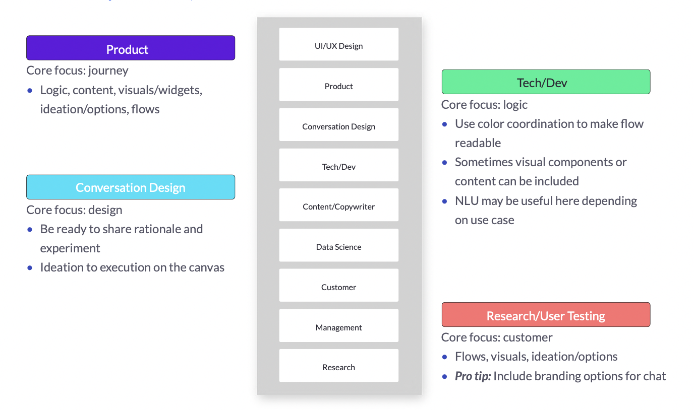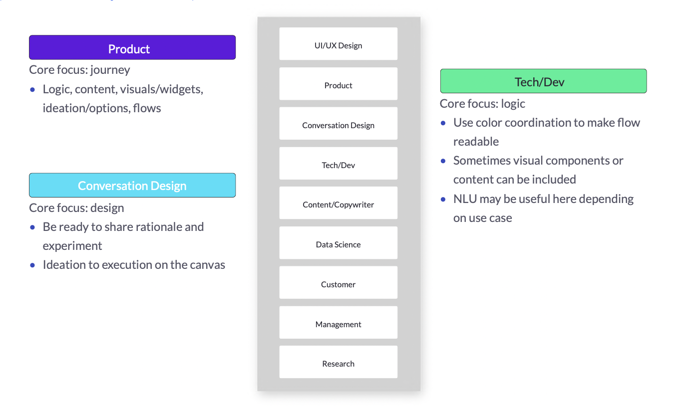 Next up, I meet with my tech and dev partners, and my focus is on the logic. To me, there are many ways to effectively coordinate with them—especially within the Voiceflow canvas to clearly show what's most relevant to them.