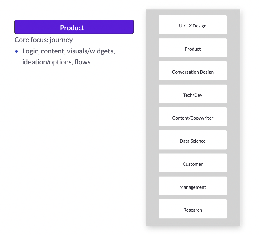 At Chase, I think of our product team as the “overseer of the future,” so I always start with them. They’re coordinating with everyone else on the team, including design, and their core focus is the journey of the flow. They want to know everything that happens at each step and who needs to be pulled in where.