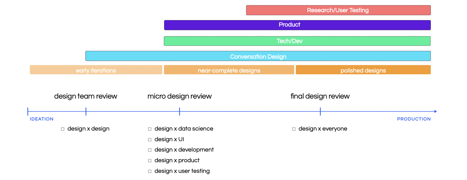 Some conversation designers work alone, but if you’re lucky enough to have some design partners, share your work with them. No person is an island—you might have missed something that another designer could have seen.