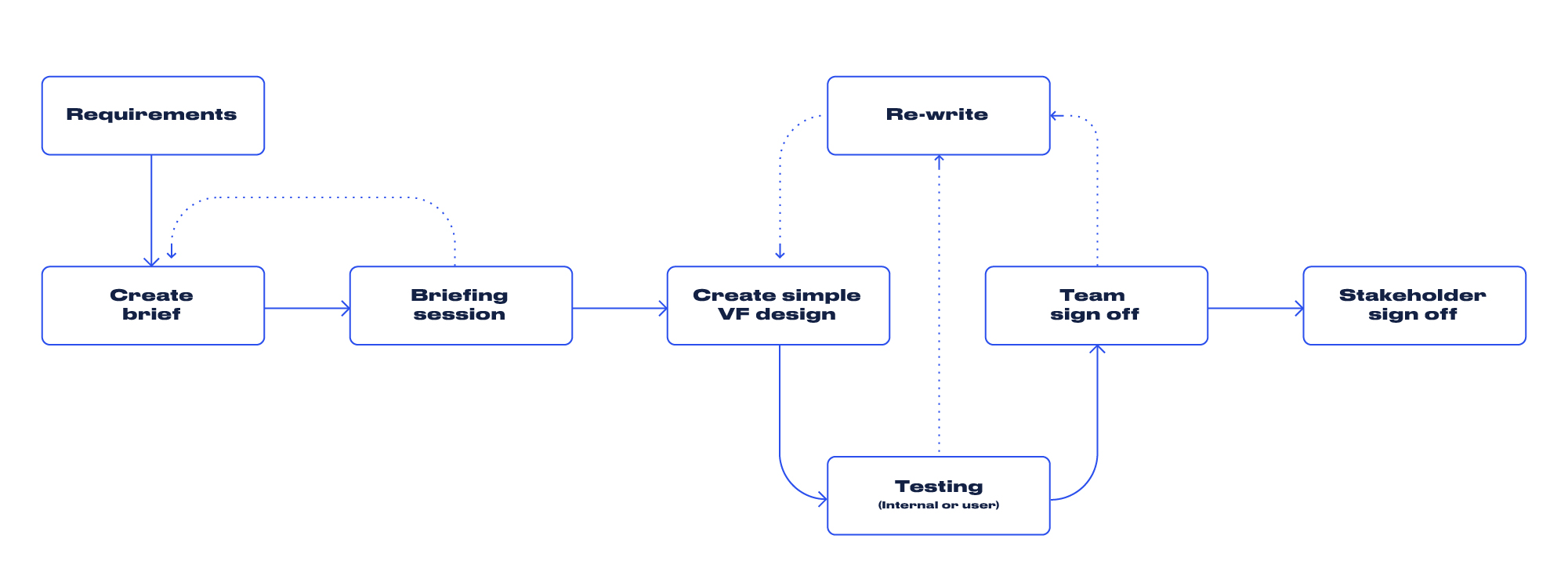 Also, many designers opt to create static sample dialogs between the briefing and design stages. My advice? That’s a relic of the past. Modern conversation design tools (like Voiceflow) allow you to leap straight into interactive prototypes, streamlining the process and facilitating richer feedback and more agile iterations.