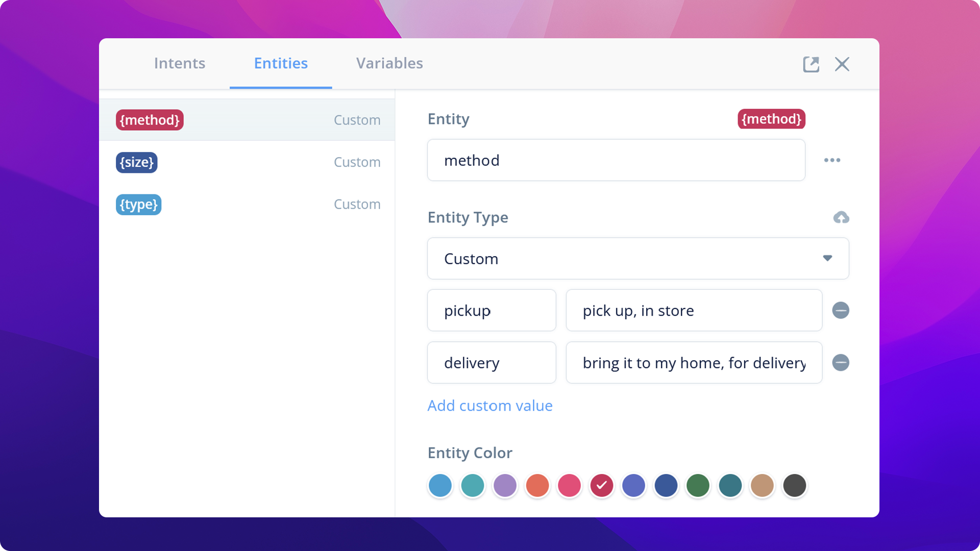 What if you wanted to parse specific user inputs? For example, you want to get the size of a pizza that the customer wants to order. That's where entity extraction comes into play.