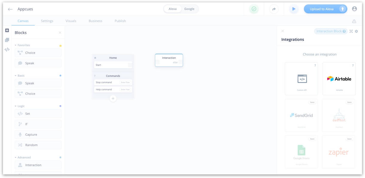 Connecting to third-party services through VUIs right now can only be done through an API call. Many users rely on no code platforms like Airtable, Google Sheets, and IFTTT to power their designs, but are forced to connect through code-heavy APIs.