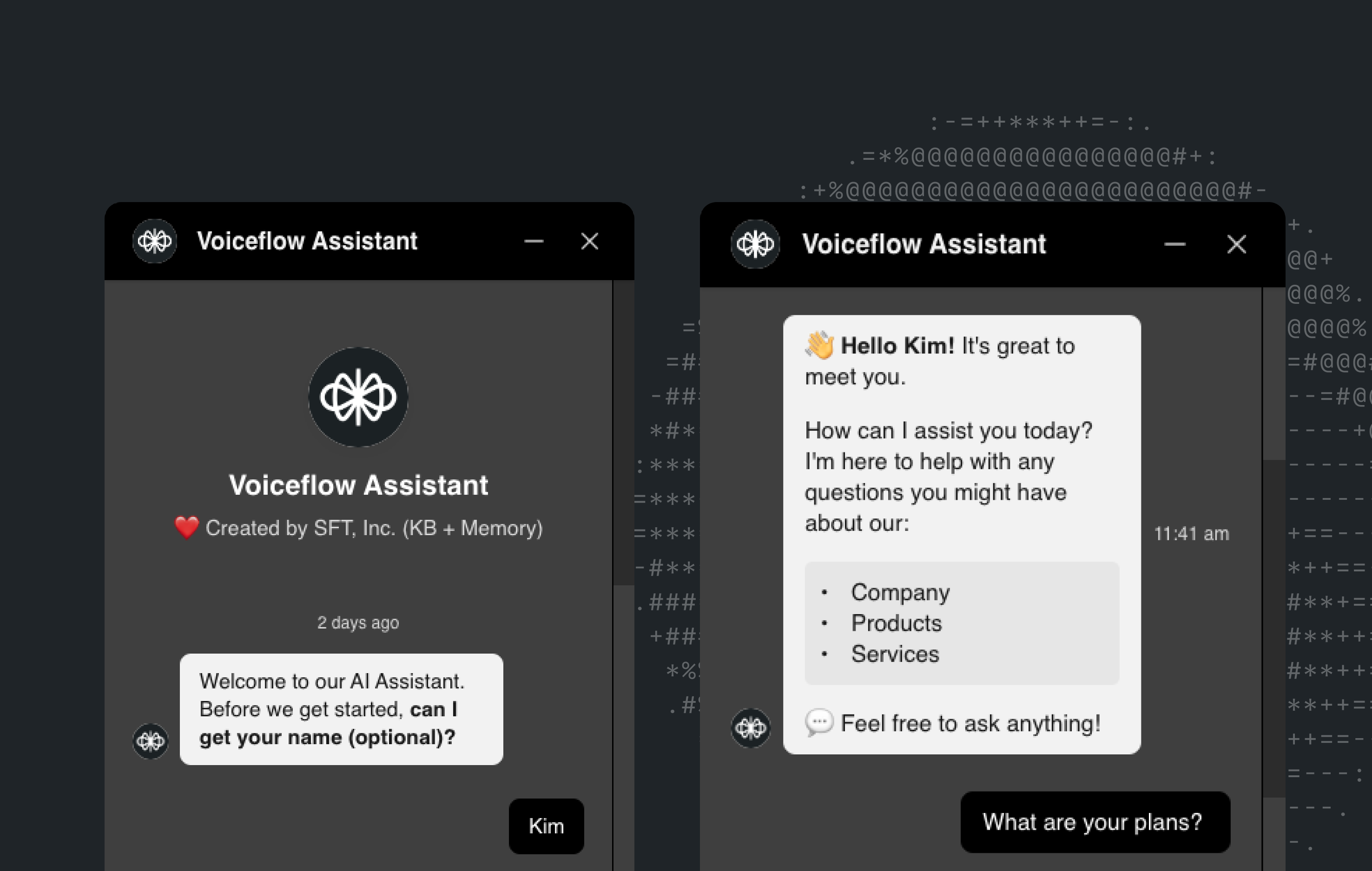 It flawlessly handles follow ups with context. For example: if you asked "what are the Voiceflow plans?" then followed up with questions like: